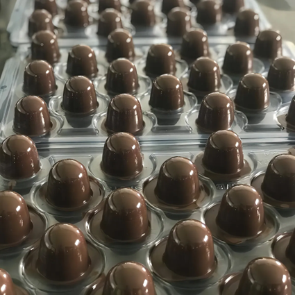 Coloque o recheio escolhido, cubra com mais chocolate e leve novamente à geladeira até endurecer.