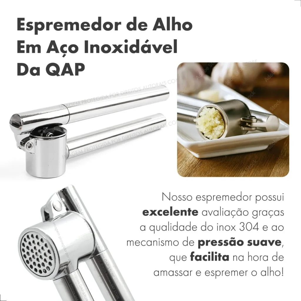 4️⃣ Espremedor de alho em aço inox com tambor removível
